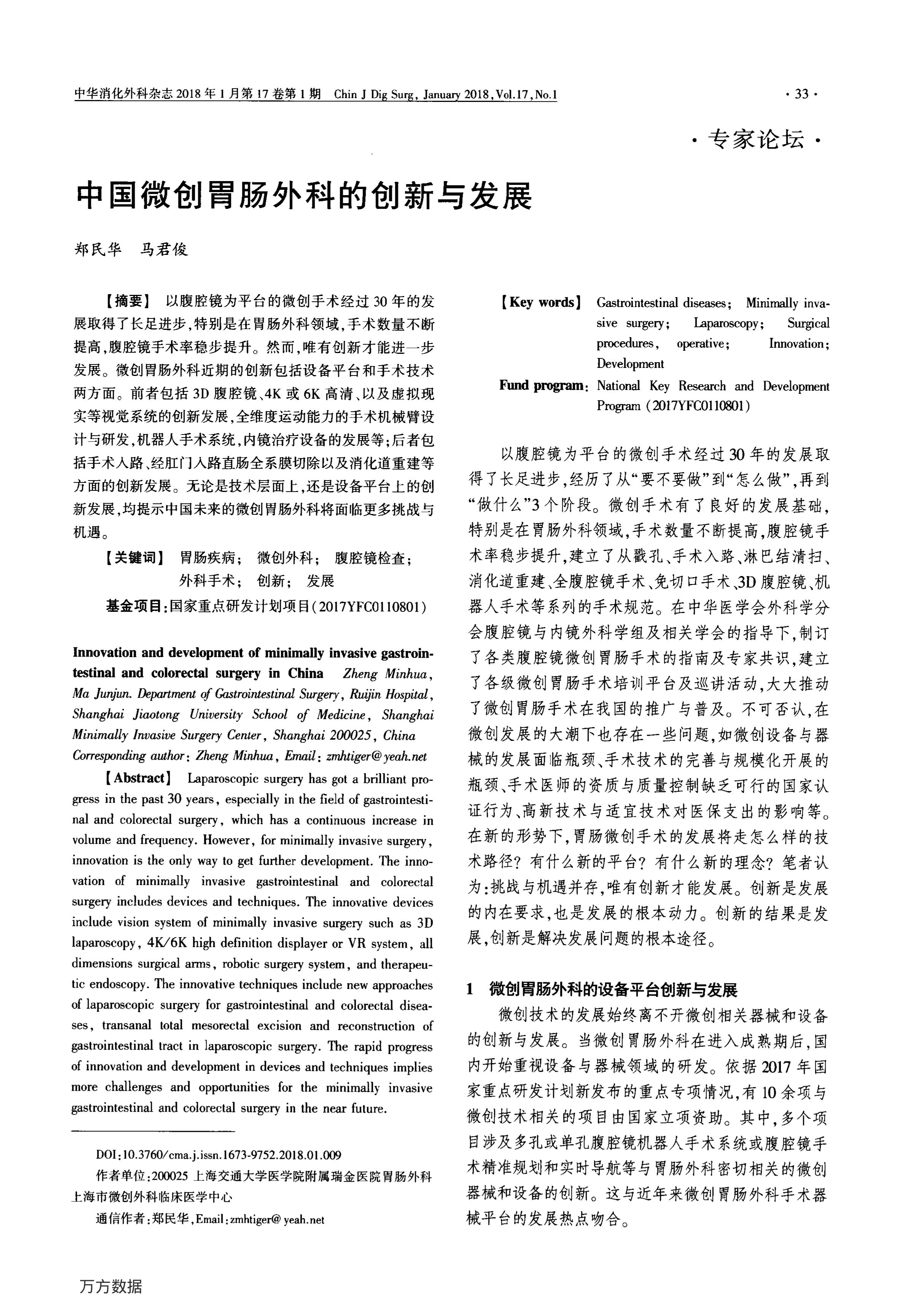 中國微創(chuàng)胃腸外科的創(chuàng)新與發(fā)展