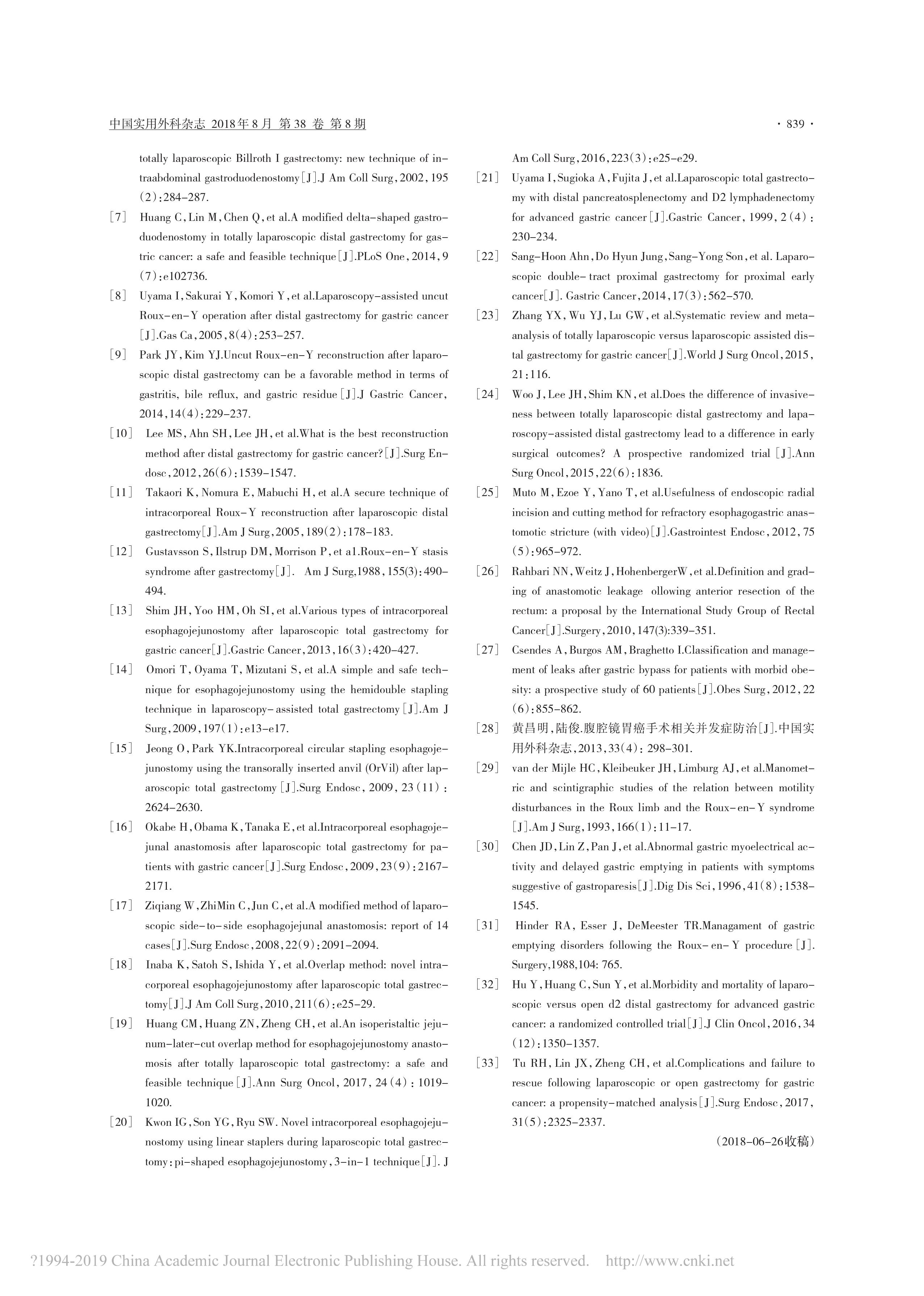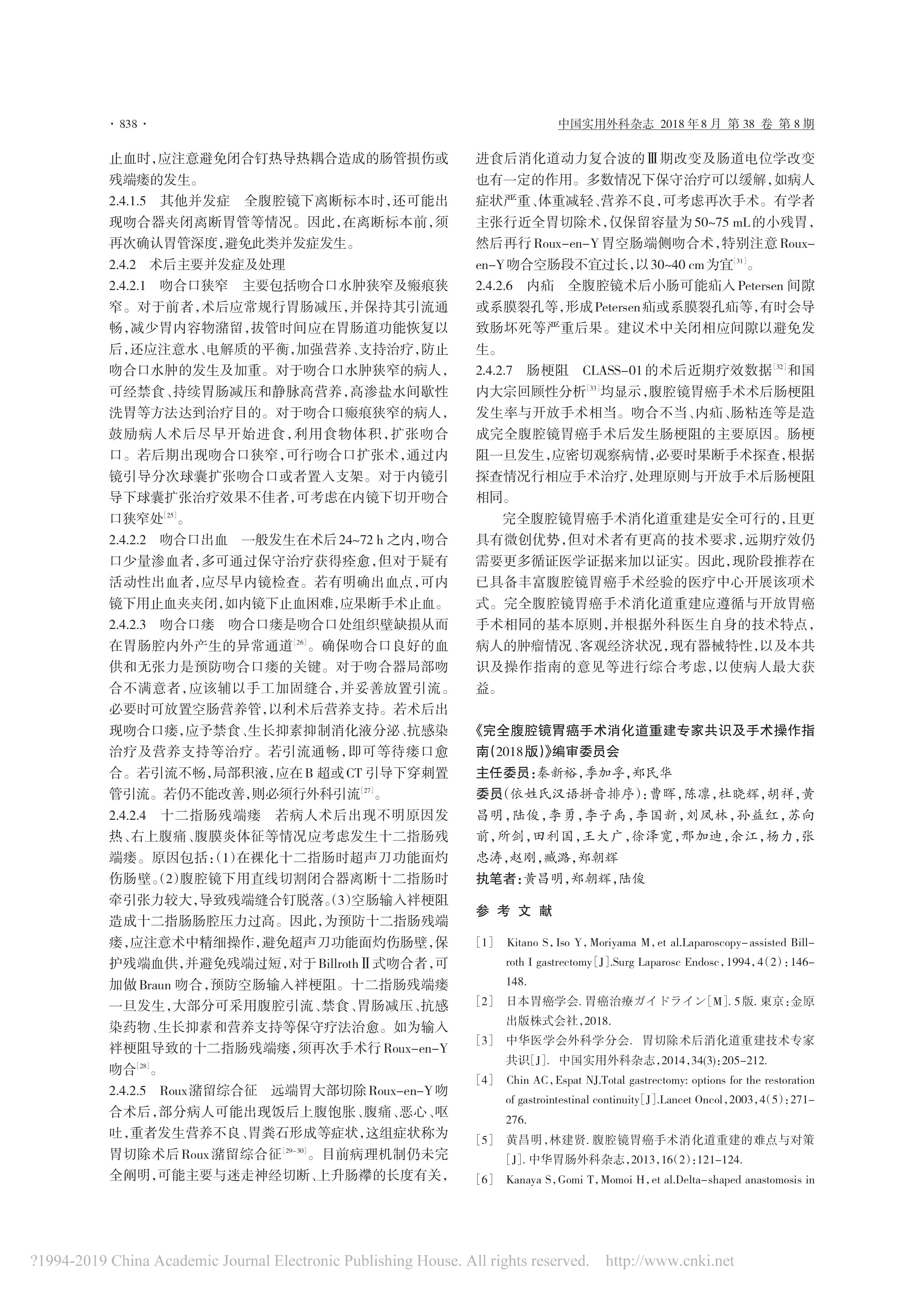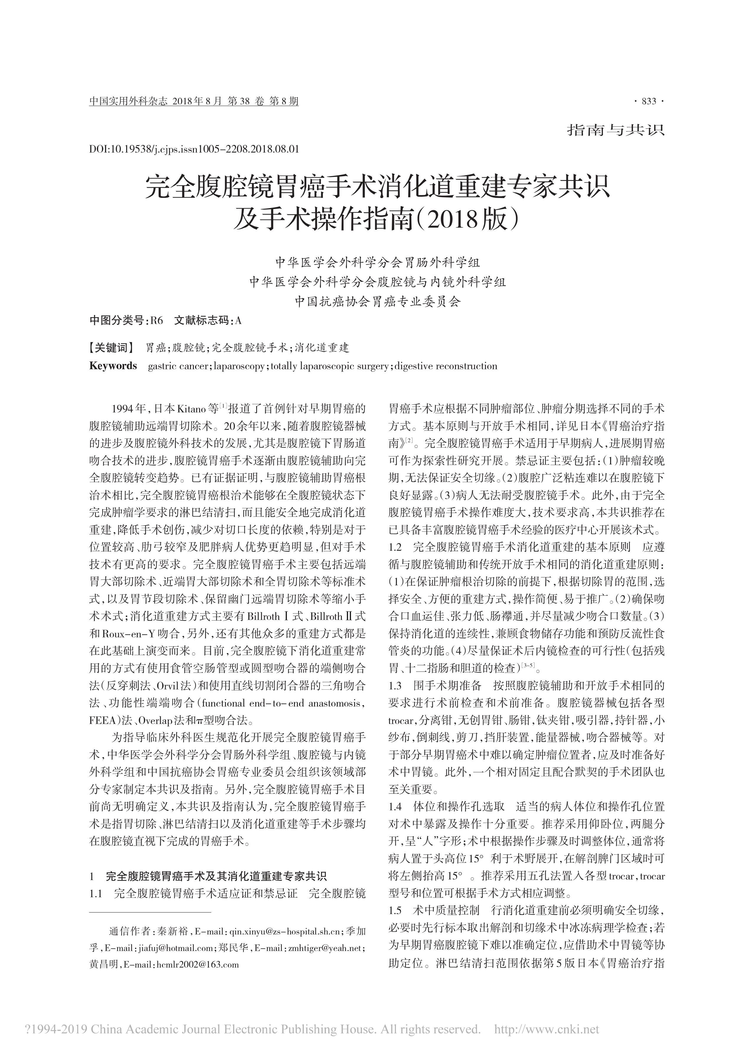 完全腹腔鏡胃癌手術(shù)消化道重建專家共識及手術(shù)操作指南(2018 版)