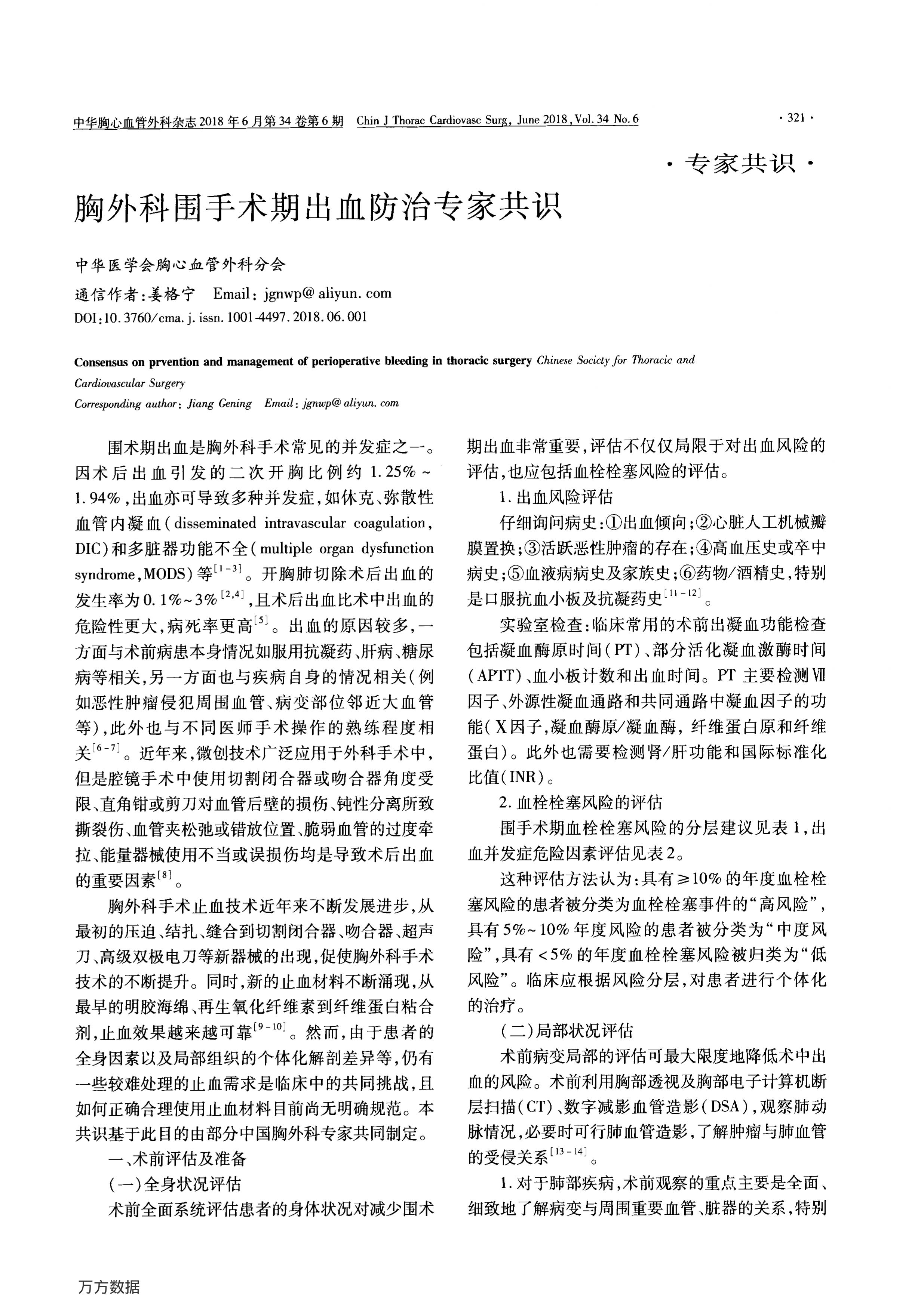 胸外科圍手術(shù)期出血防治專家共識(shí)