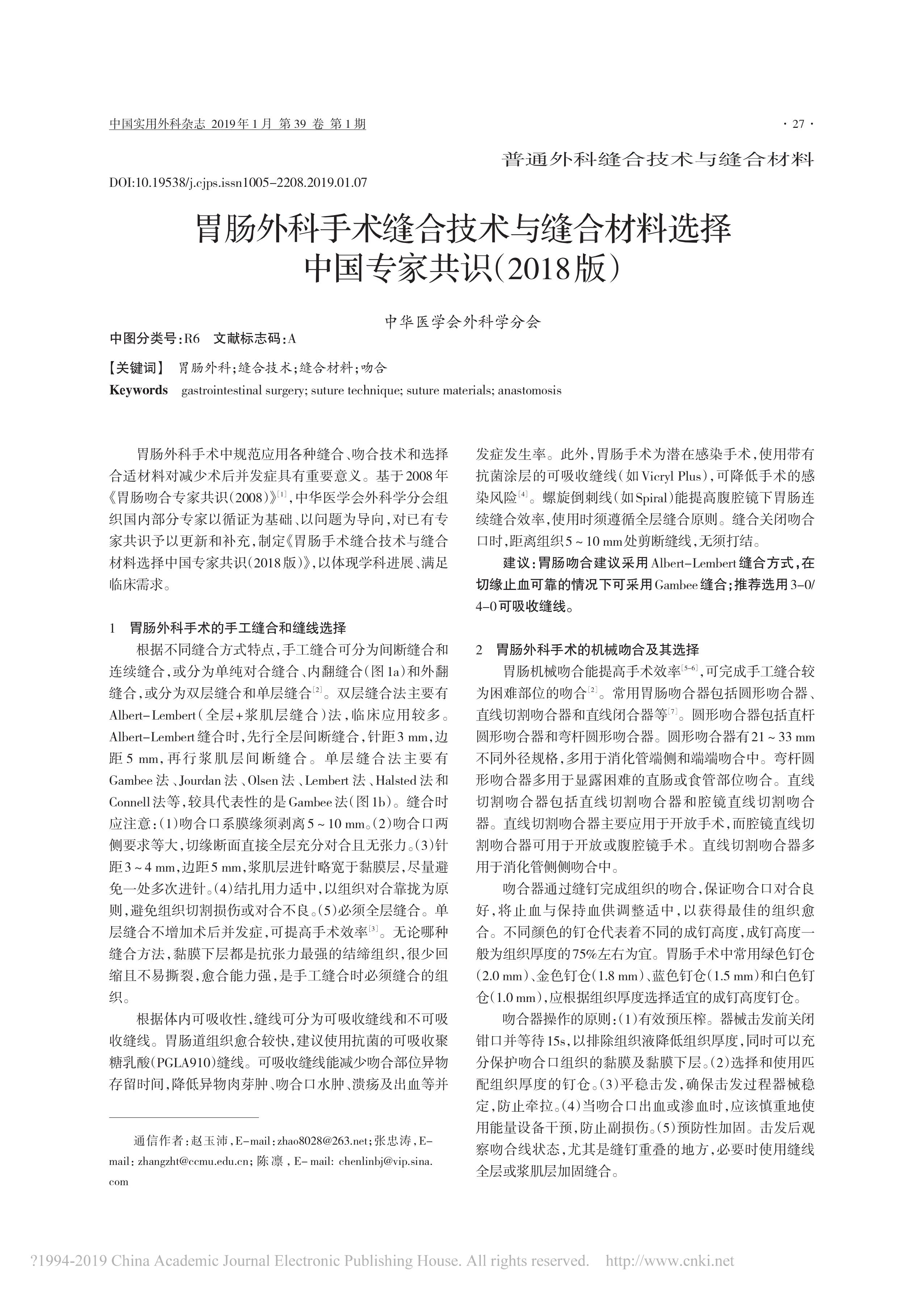 胃腸外科手術(shù)縫合技術(shù)與縫合材料選擇中國專家共識(2018 版)