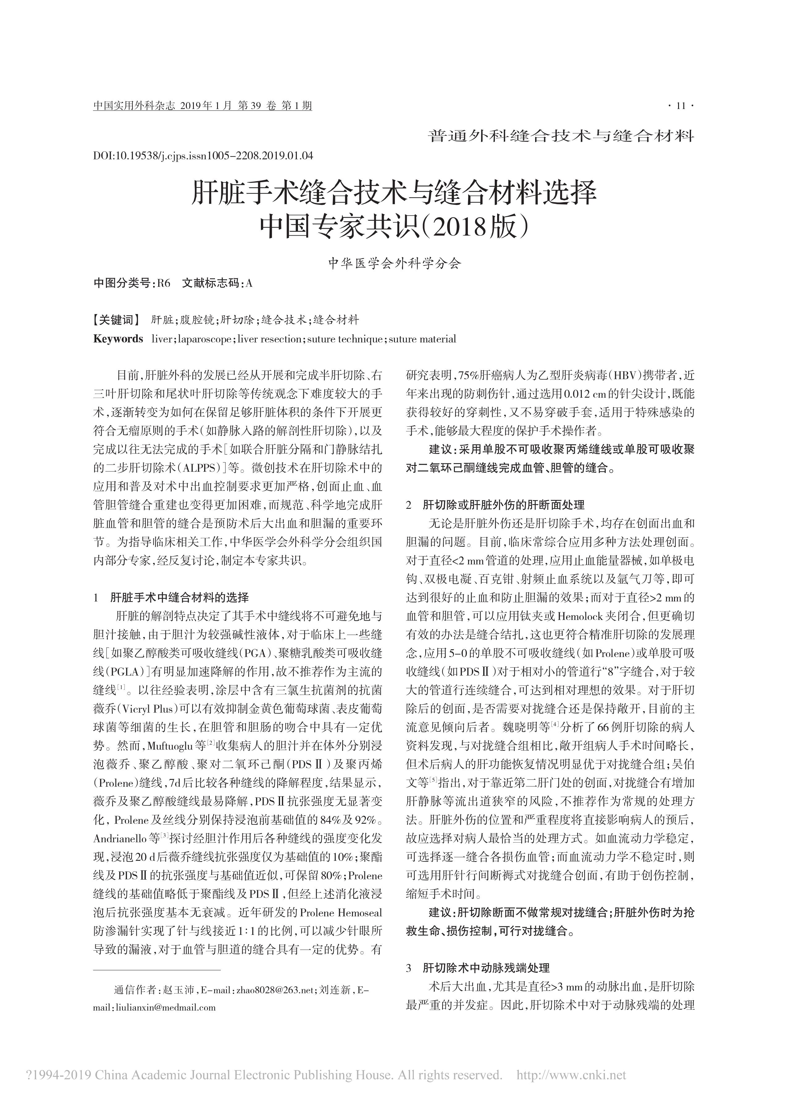 肝臟手術縫合技術與縫合材料選擇 中國專家共識(2018 版)