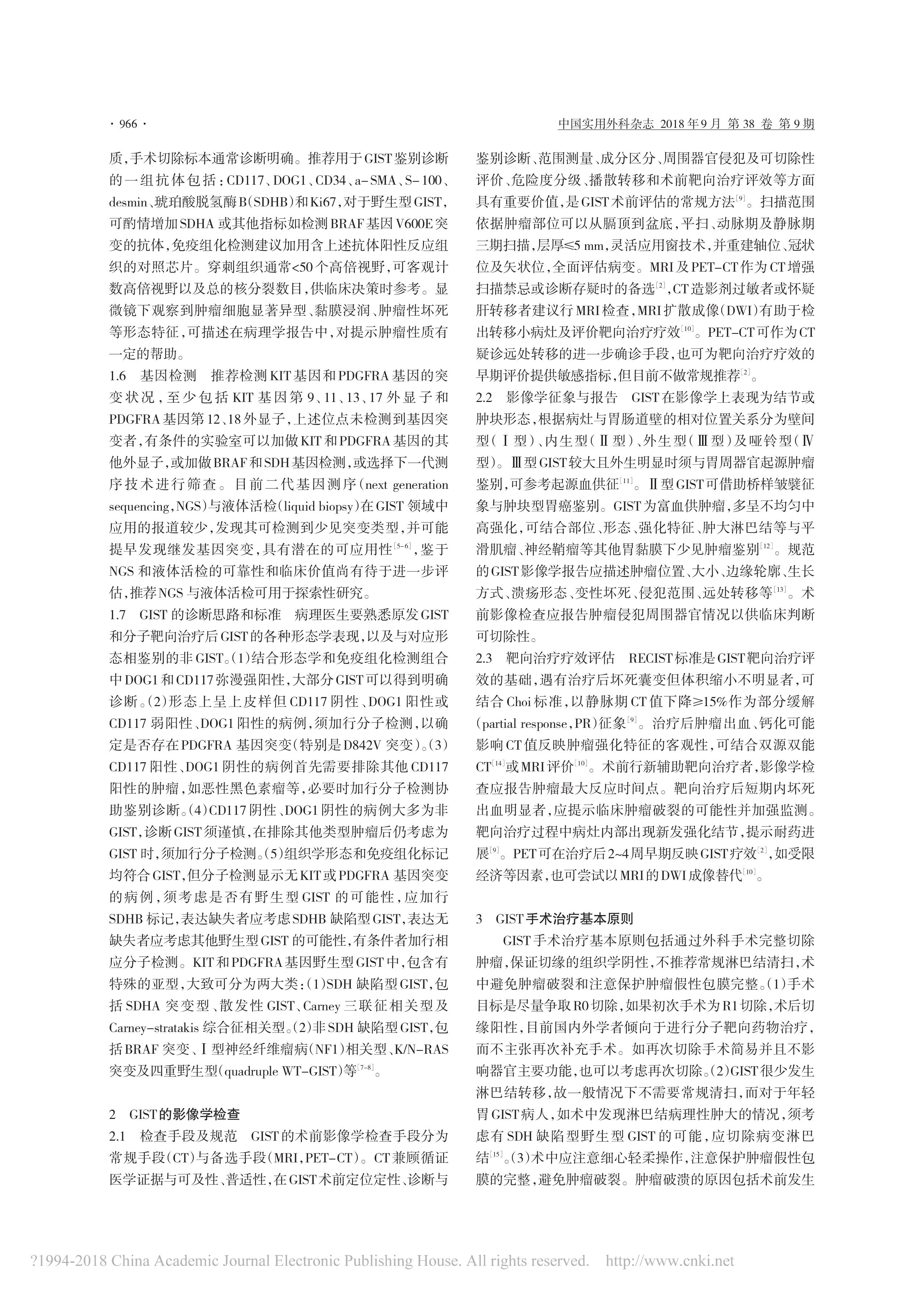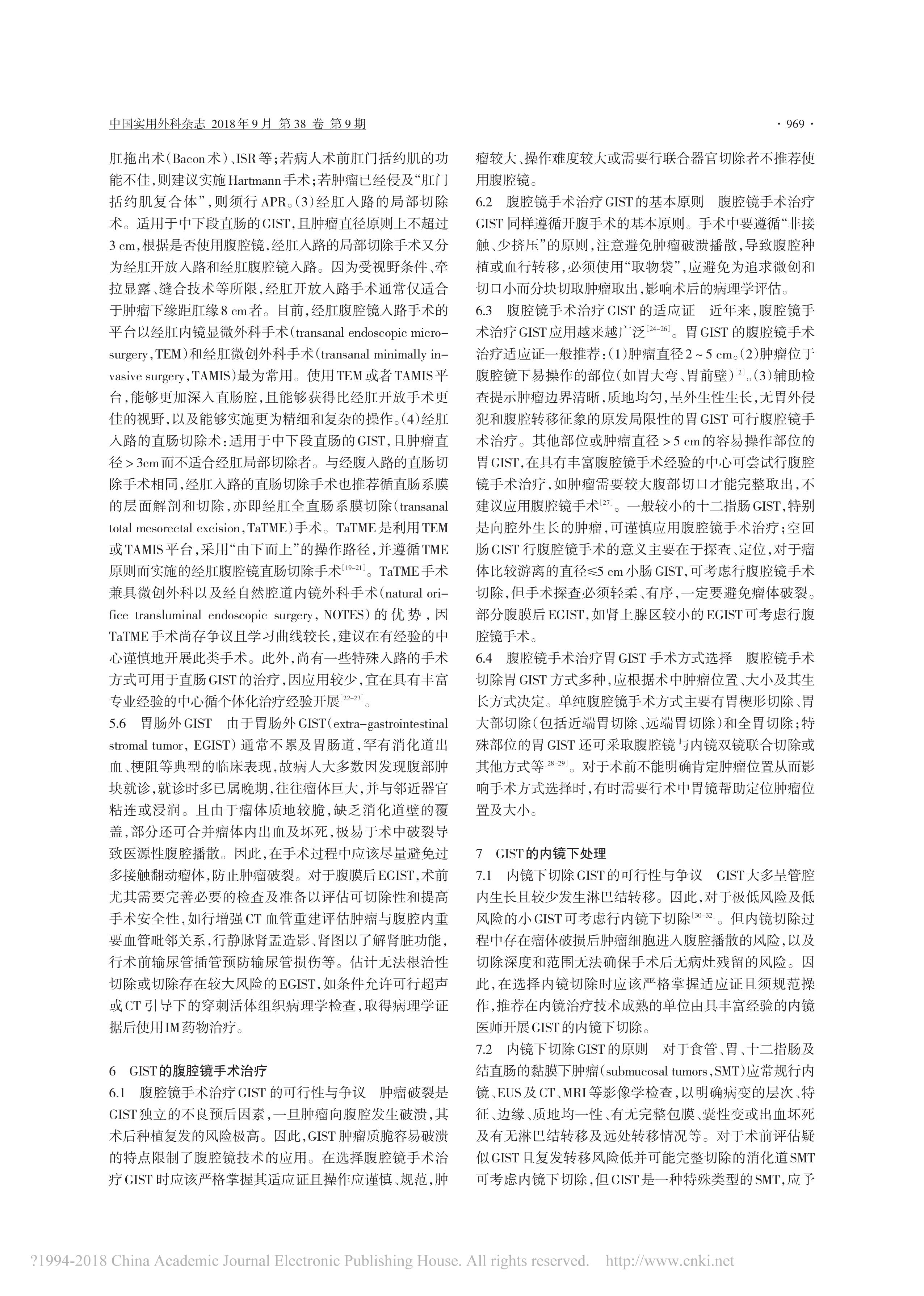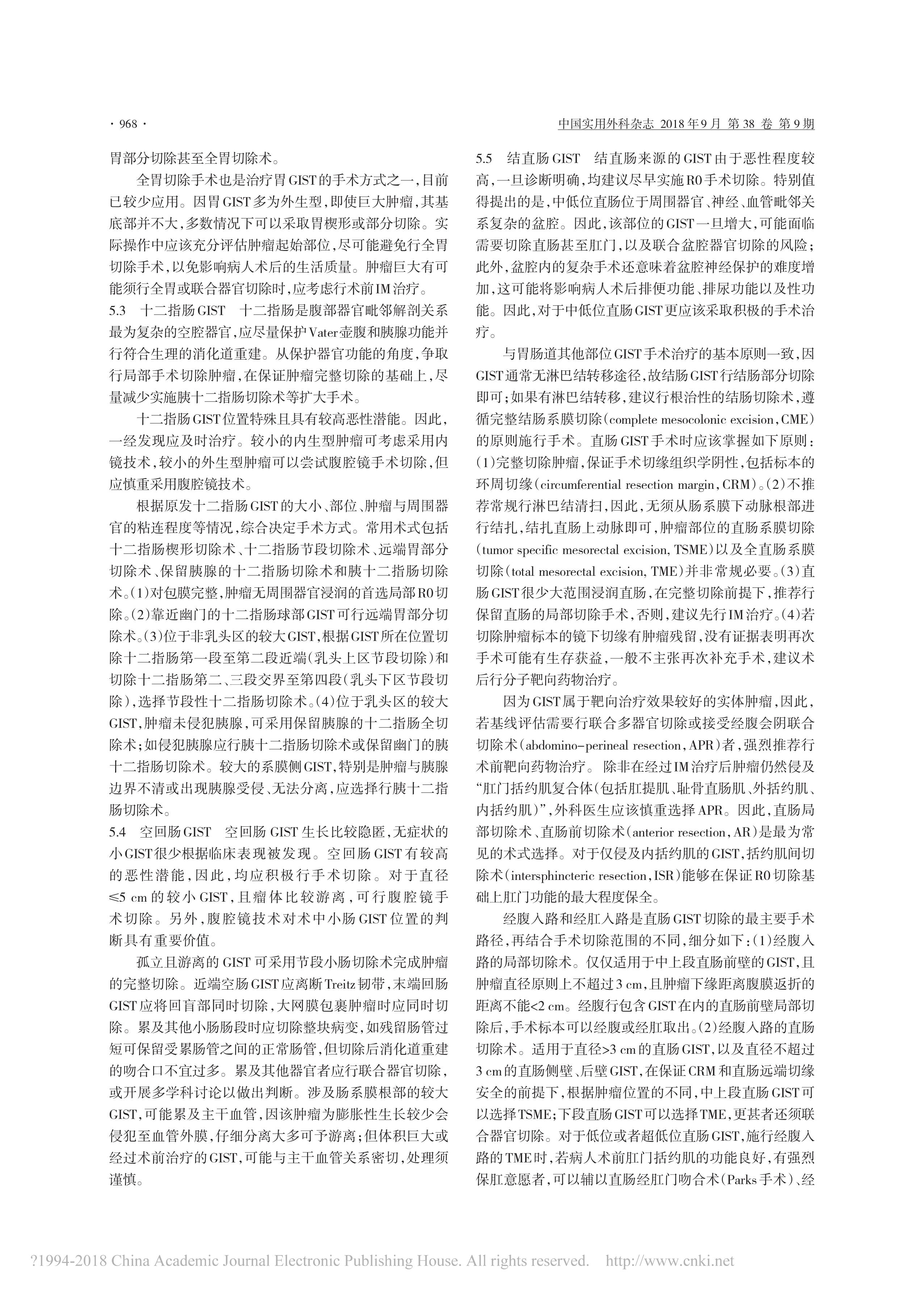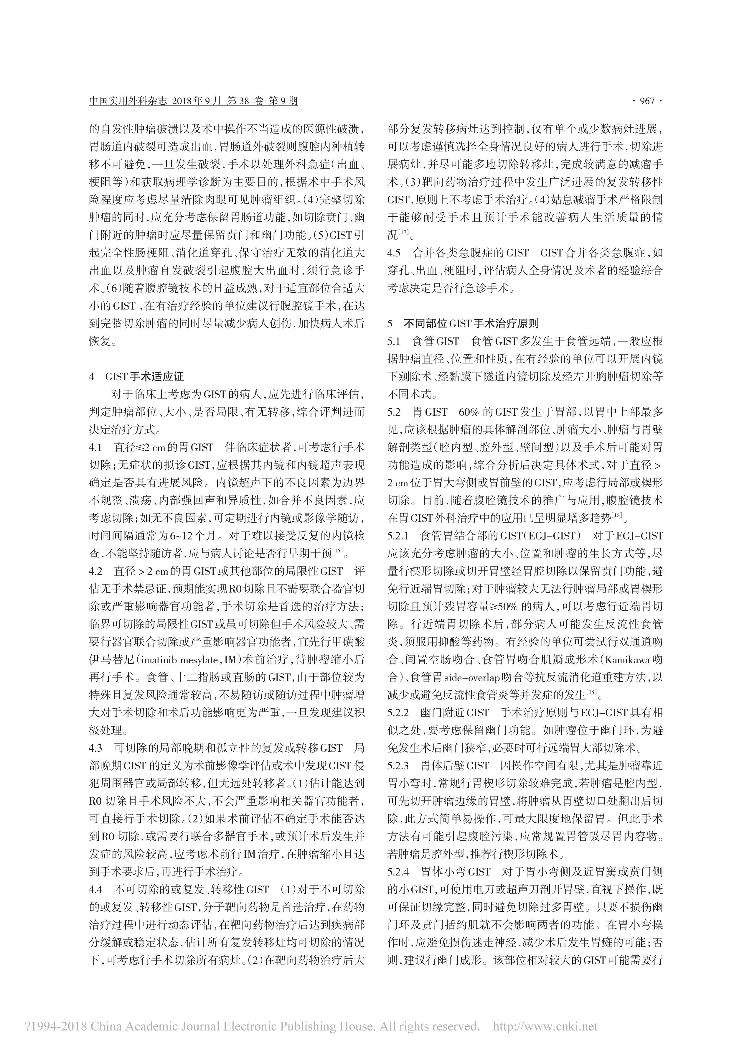 胃腸間質(zhì)瘤規(guī)范化外科治療中國專家共識(2018 版)