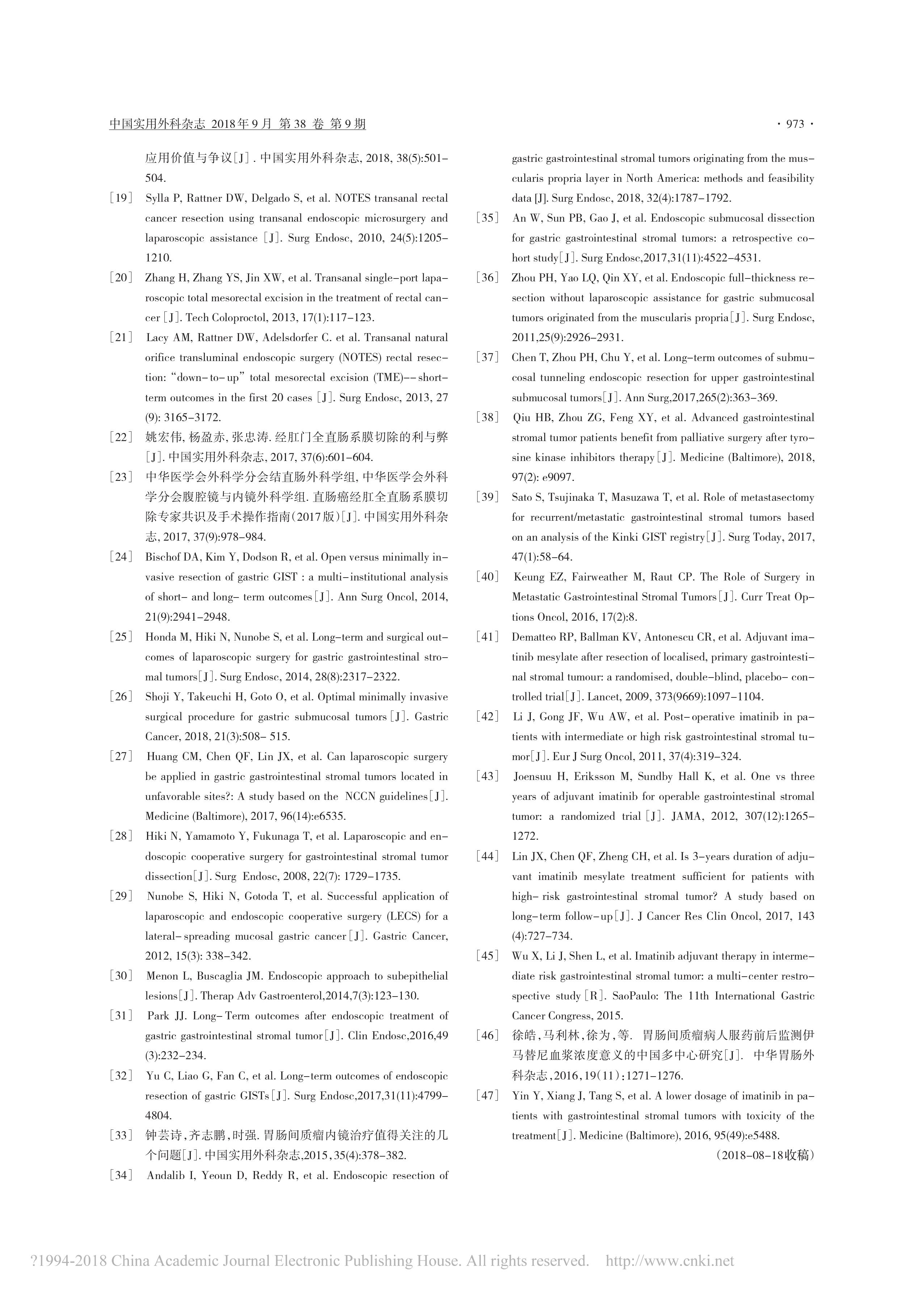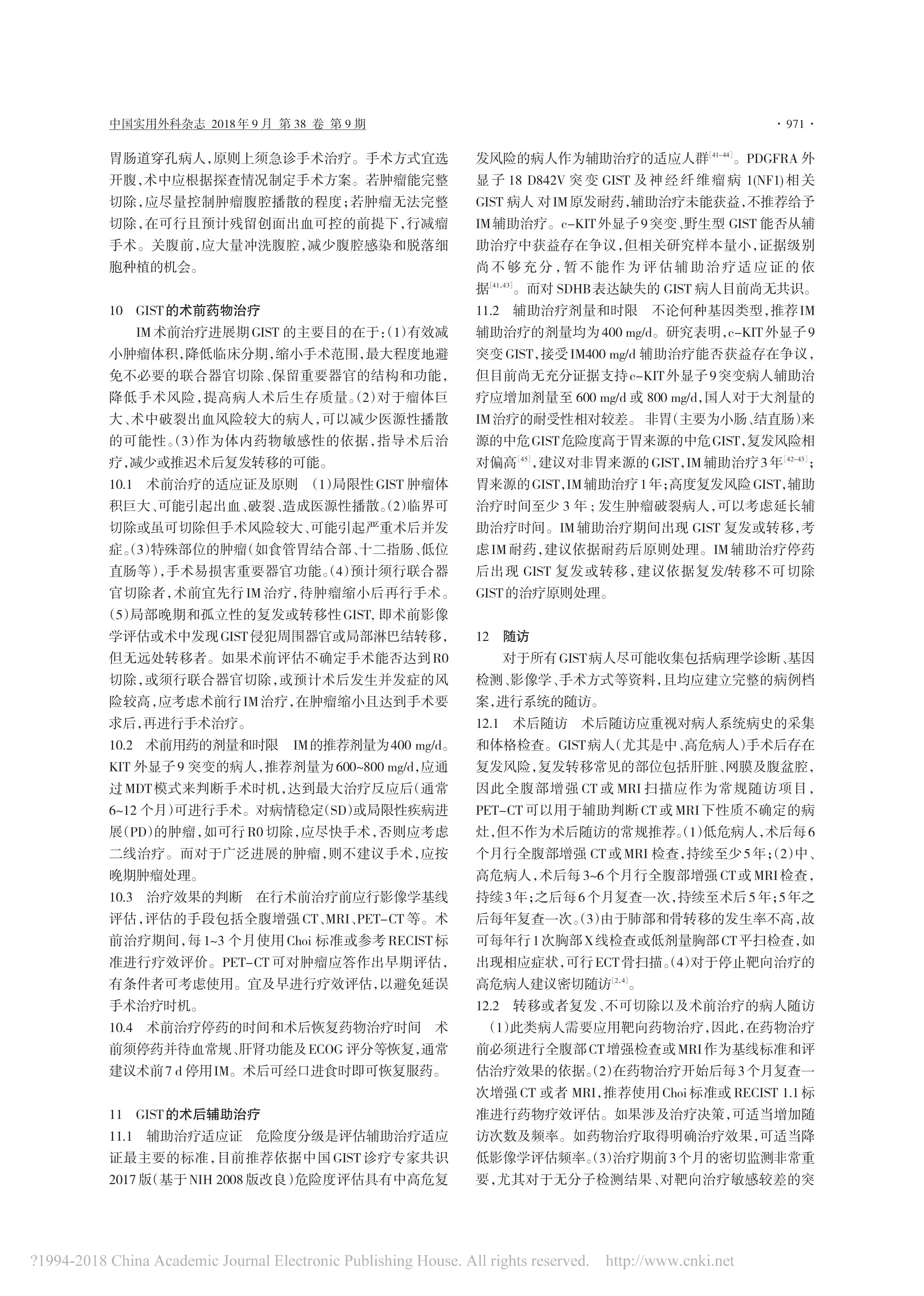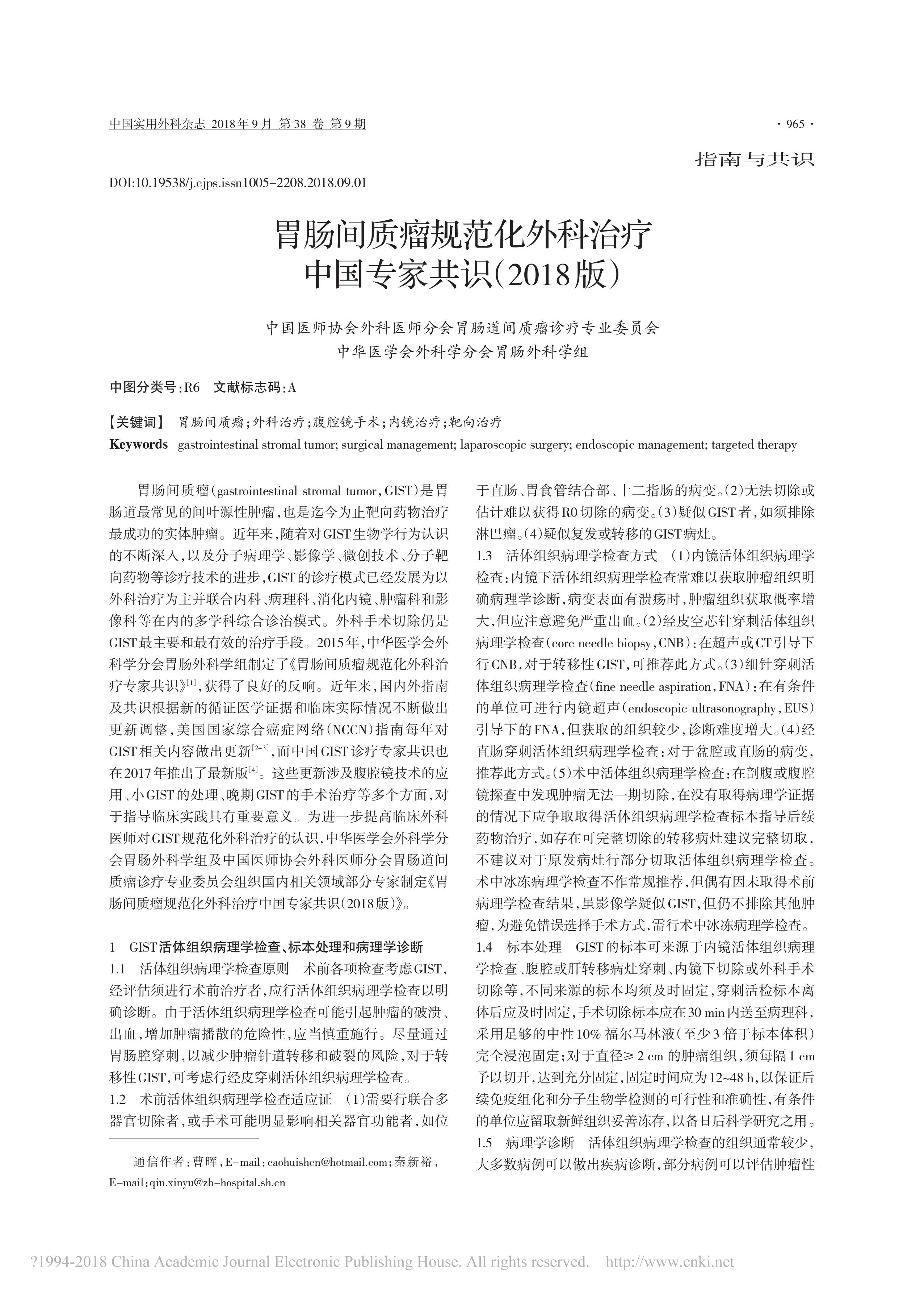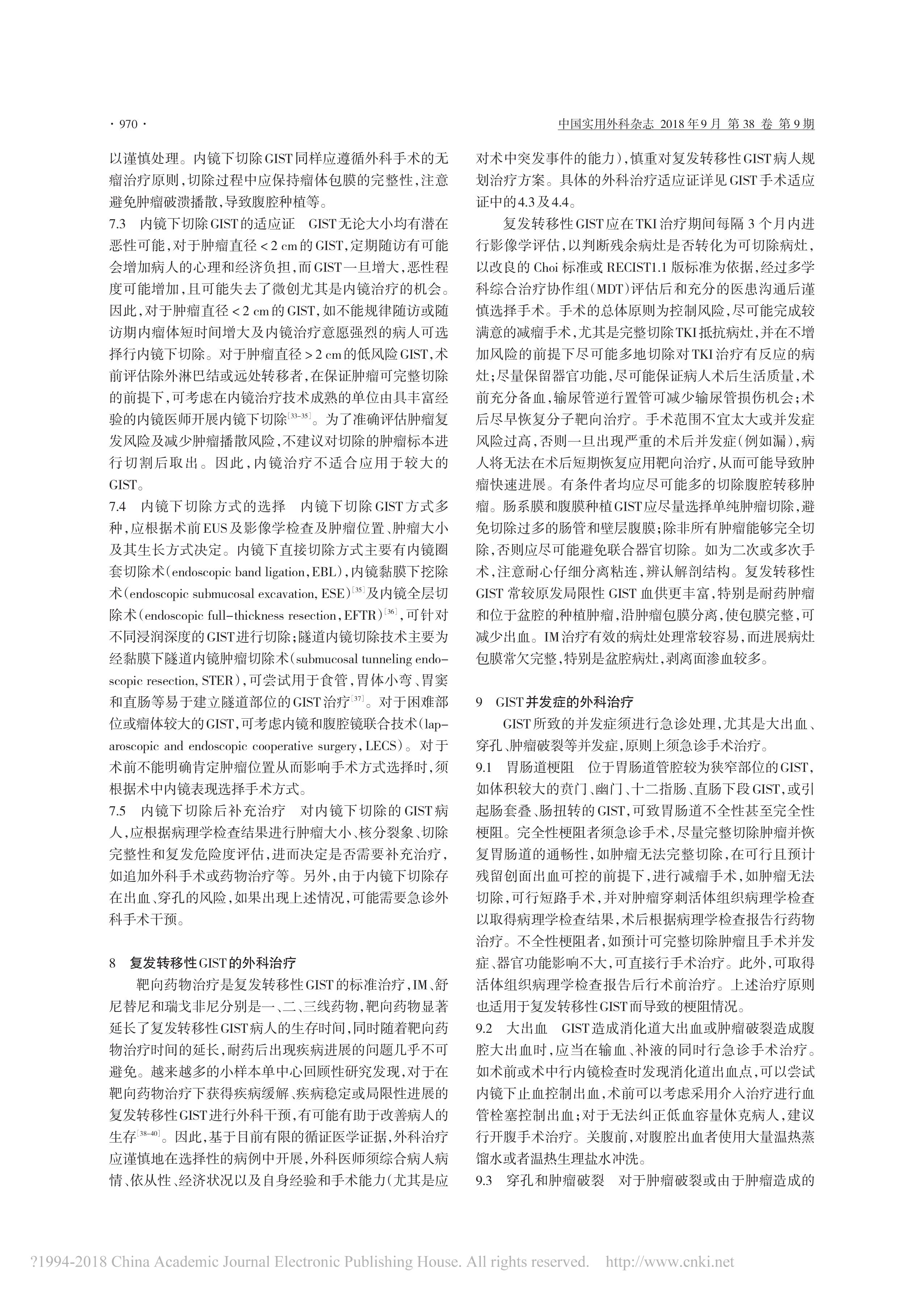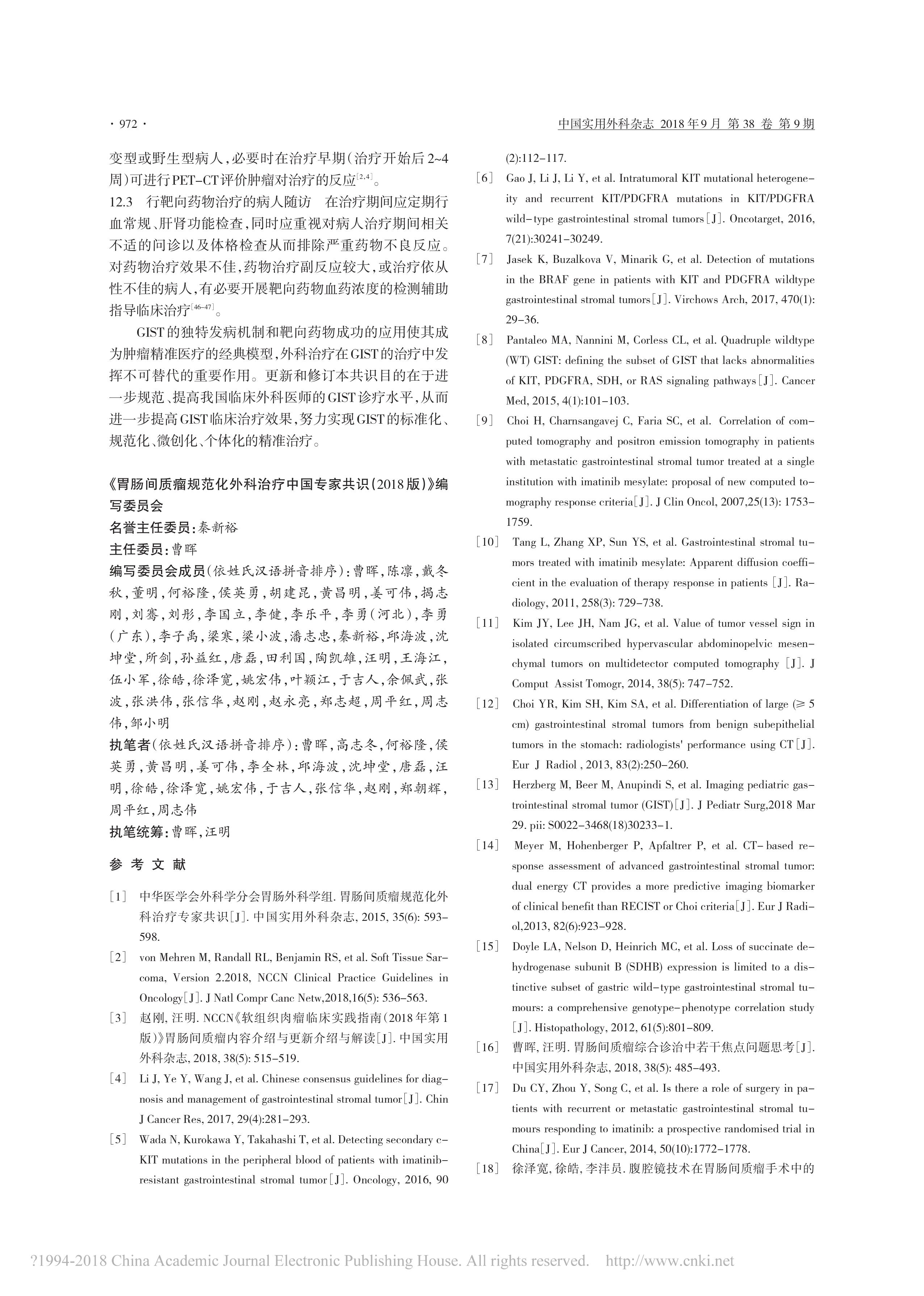 胃腸間質(zhì)瘤規(guī)范化外科治療中國專家共識(2018 版)