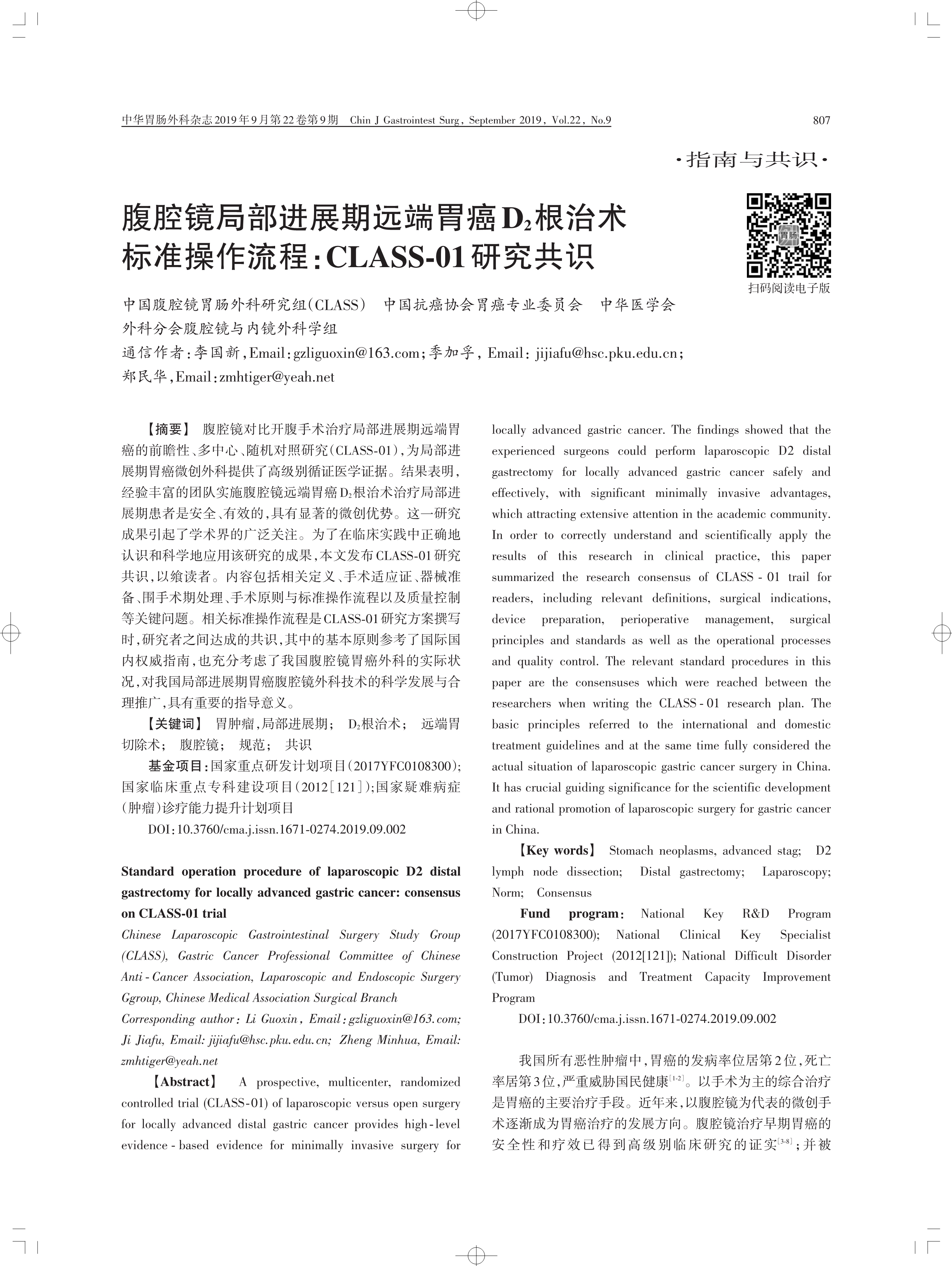 腹腔鏡局部進(jìn)展期遠(yuǎn)端胃癌D2根治術(shù)標(biāo)準(zhǔn)操作流程:CLASS?01研究共識(shí)