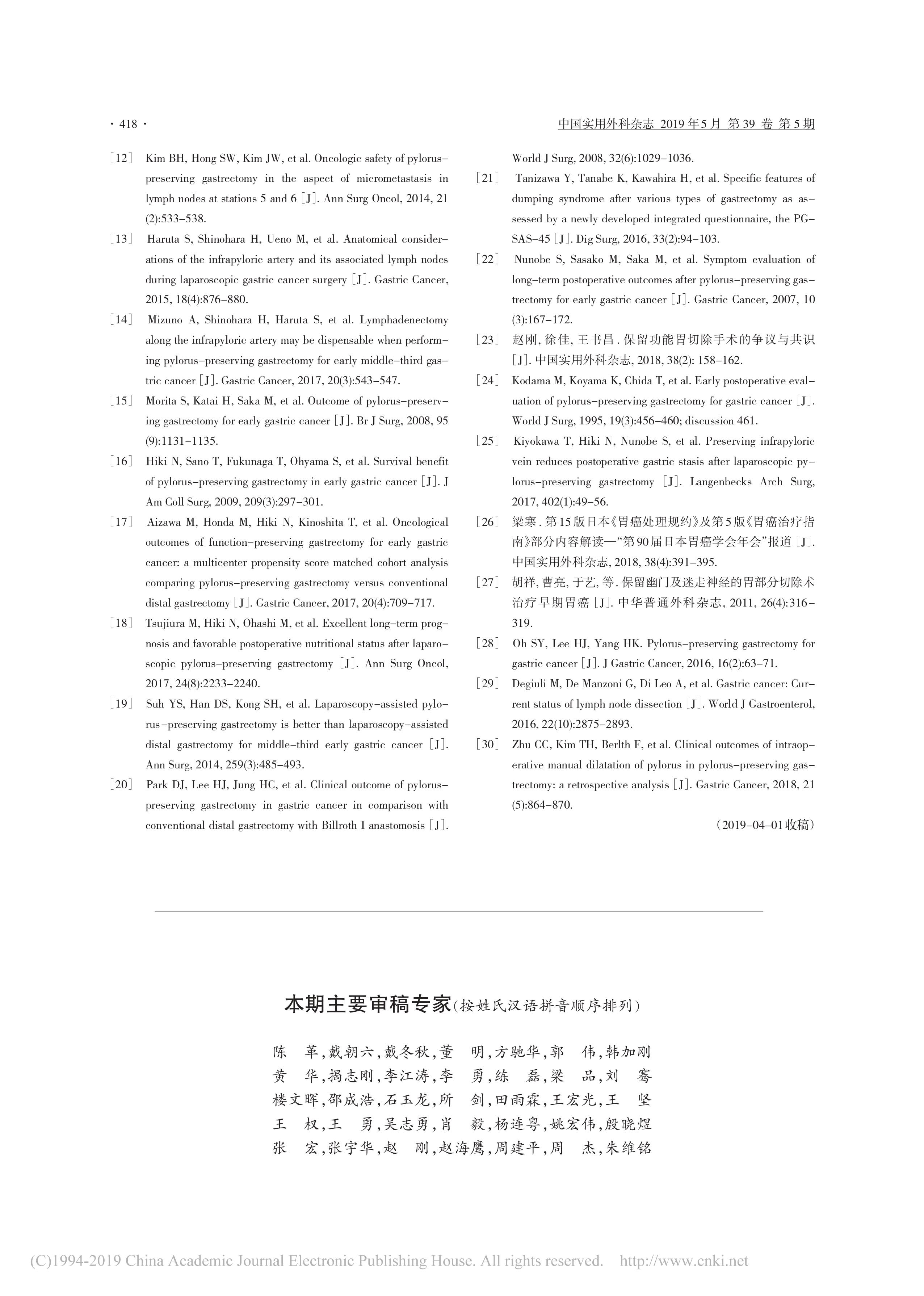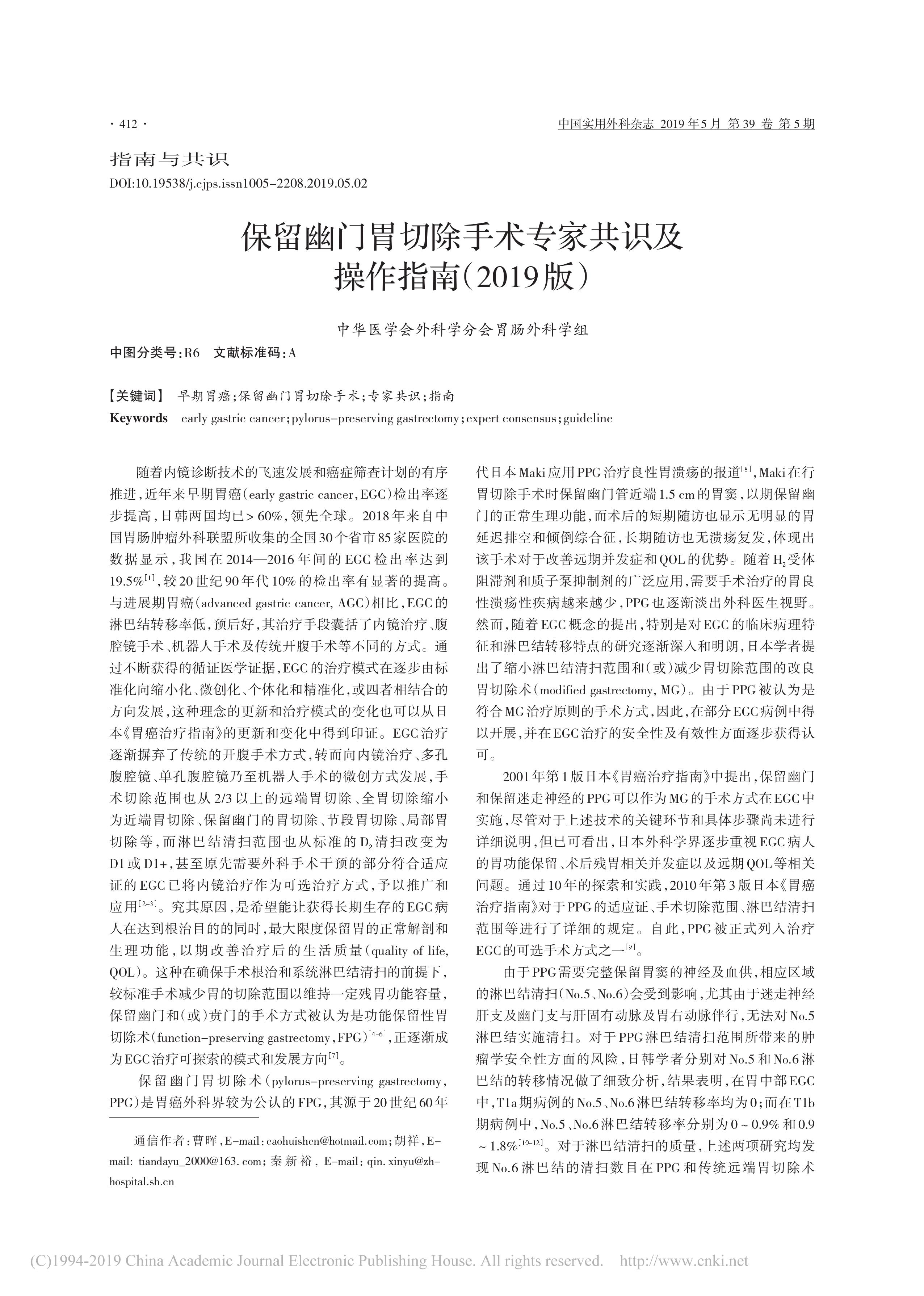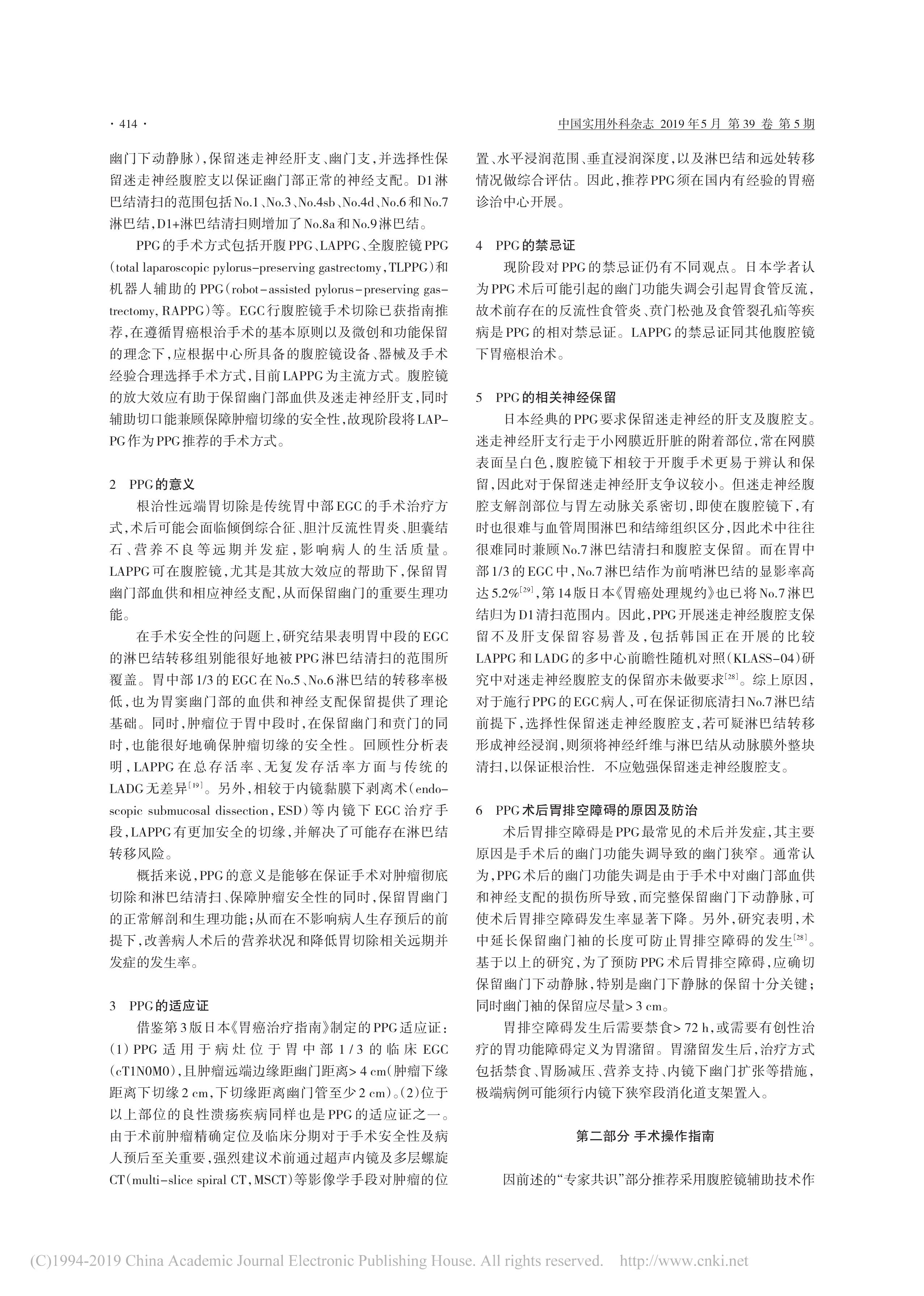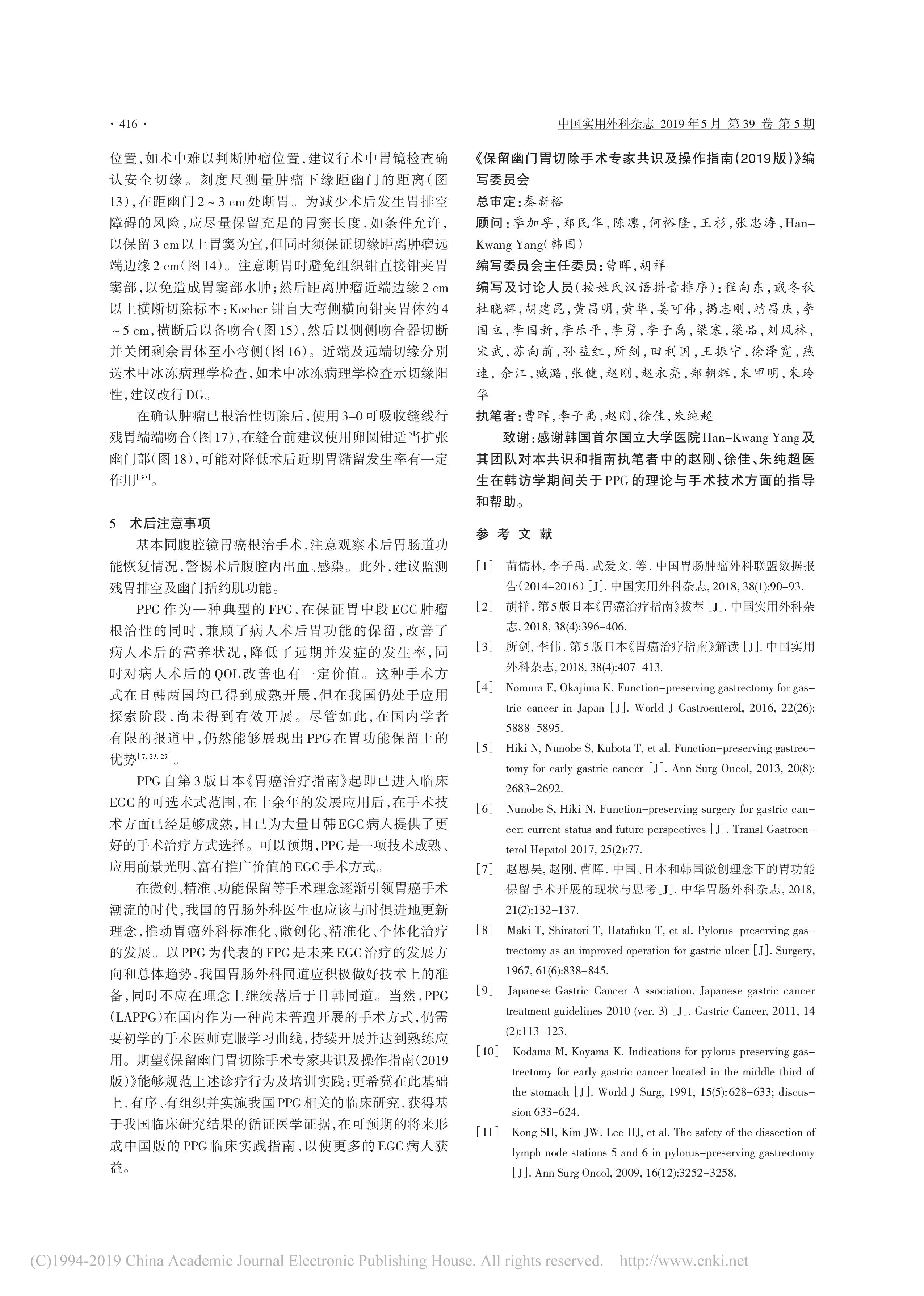保留幽門胃切除手術(shù)專家共識(shí)及操作指南(2019 版)