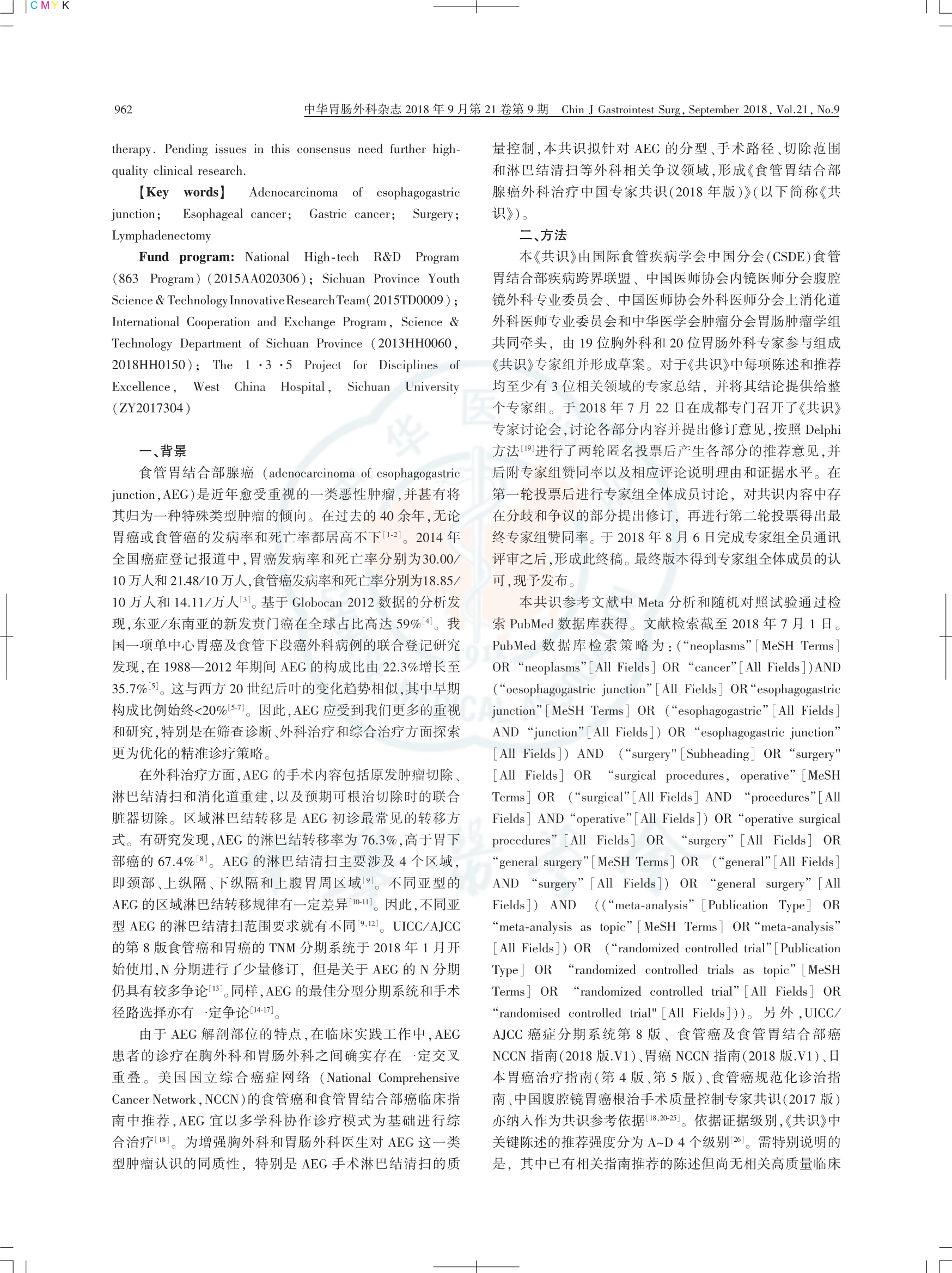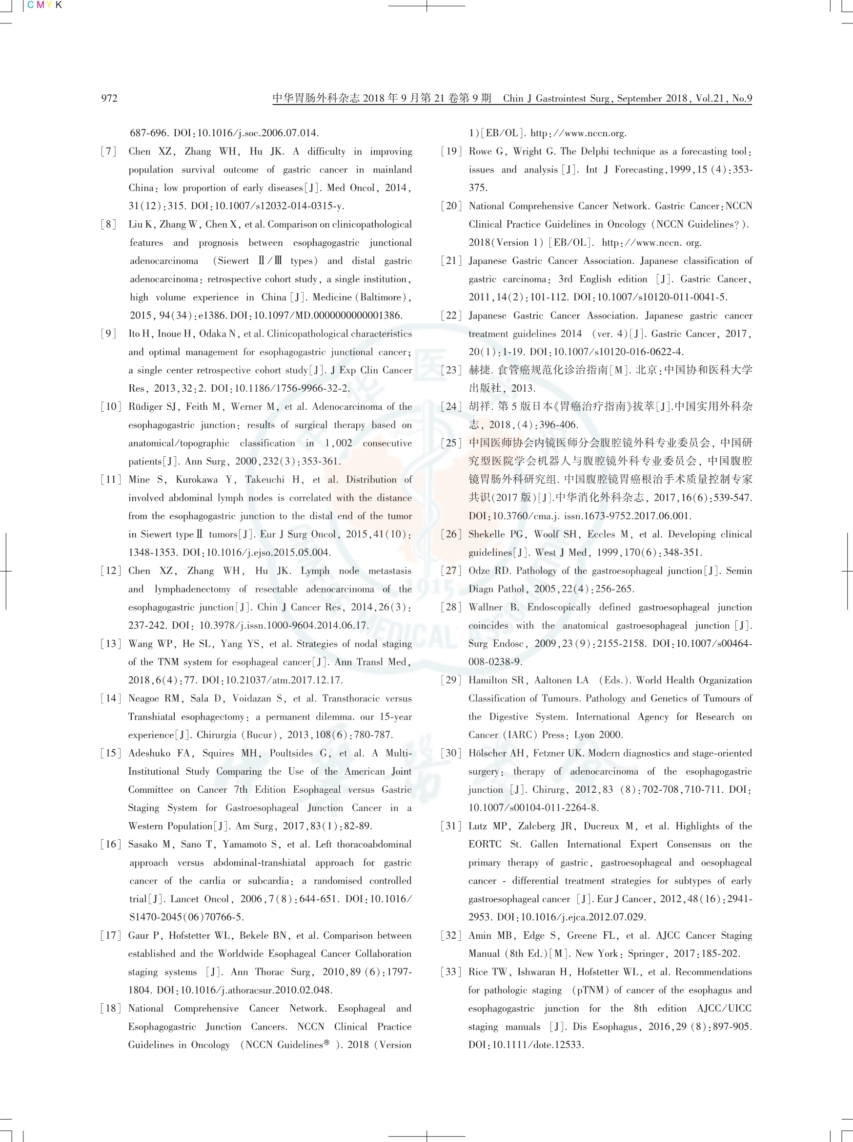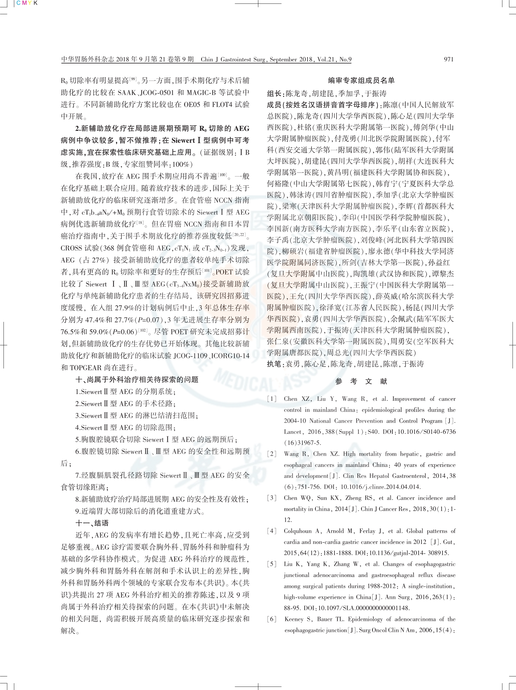 食管胃結(jié)合部腺癌外科治療中國(guó)專(zhuān)家共識(shí)(2018版)