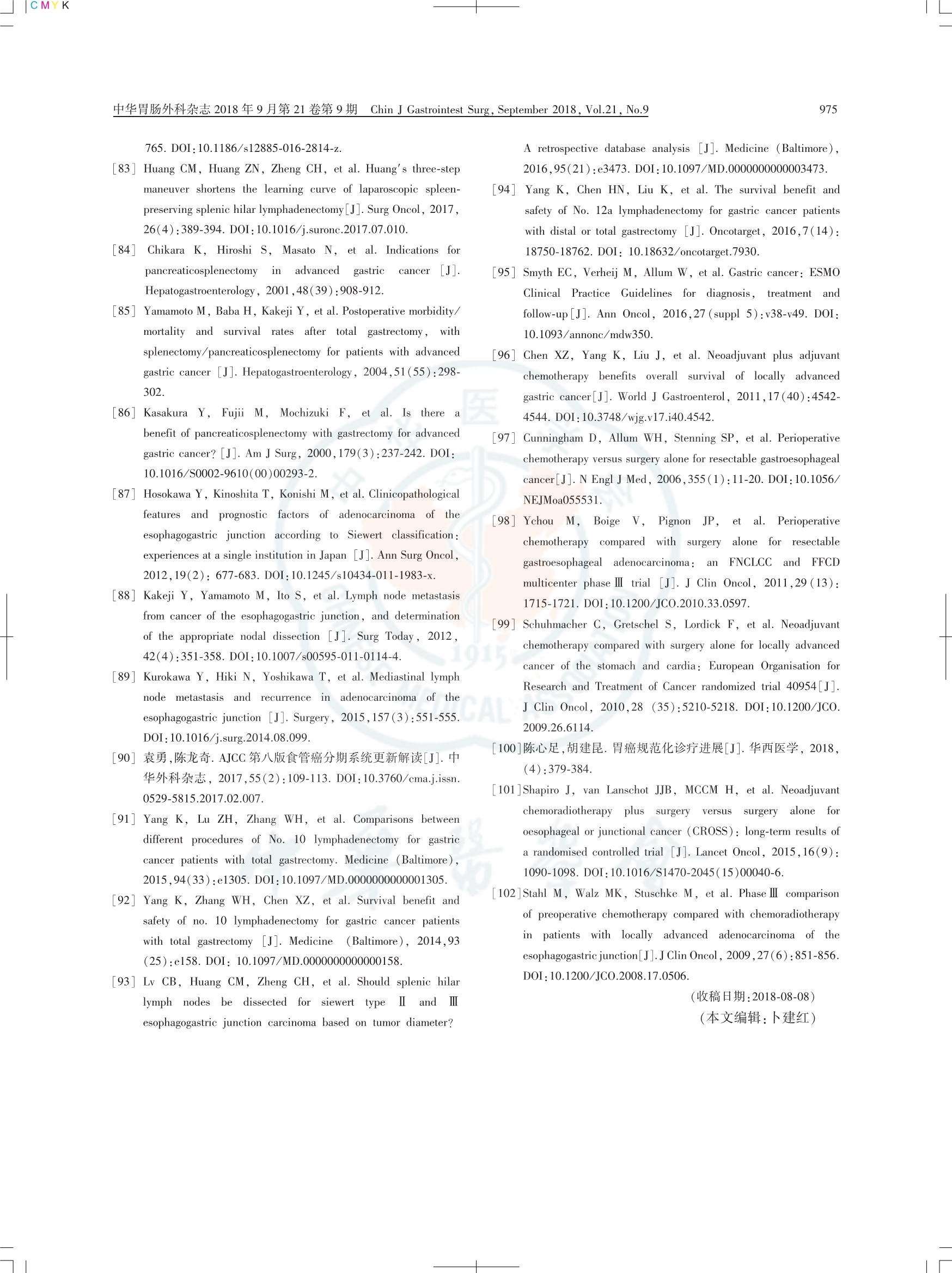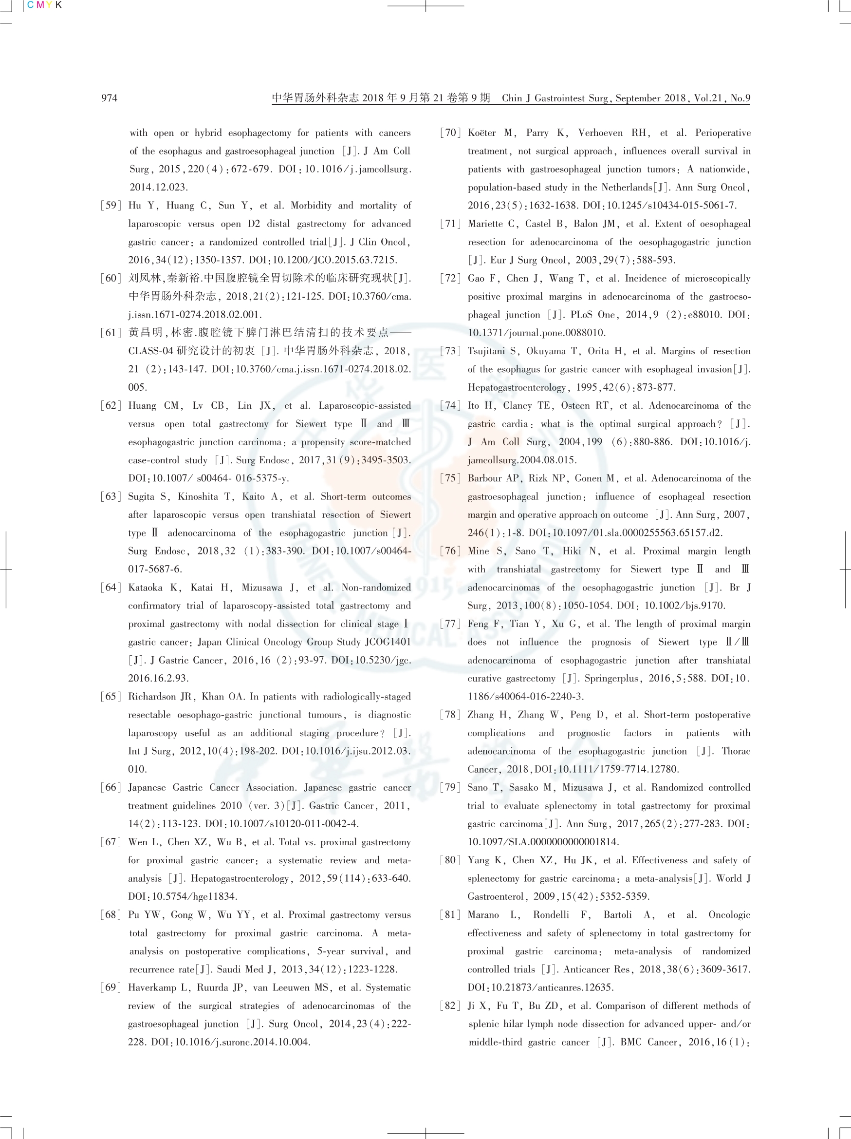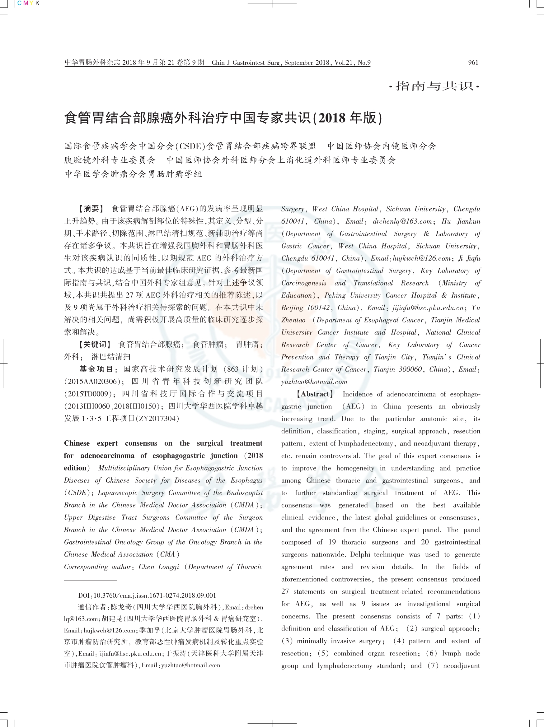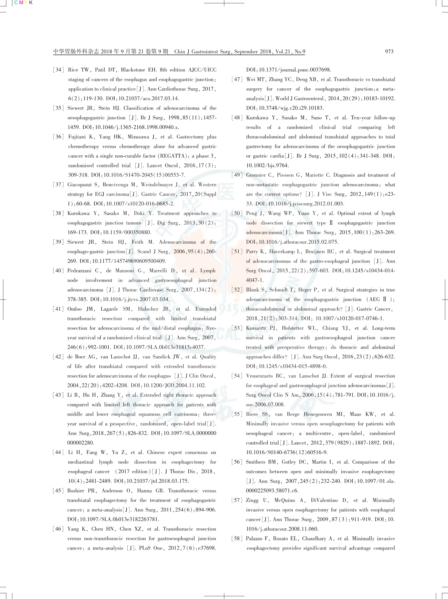食管胃結(jié)合部腺癌外科治療中國(guó)專(zhuān)家共識(shí)(2018版)