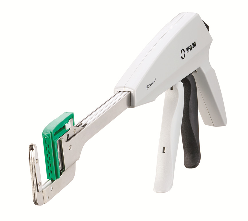 一次性使用直線型吻合器提供兩排相互交錯的鈦釘,可以縫合組織。